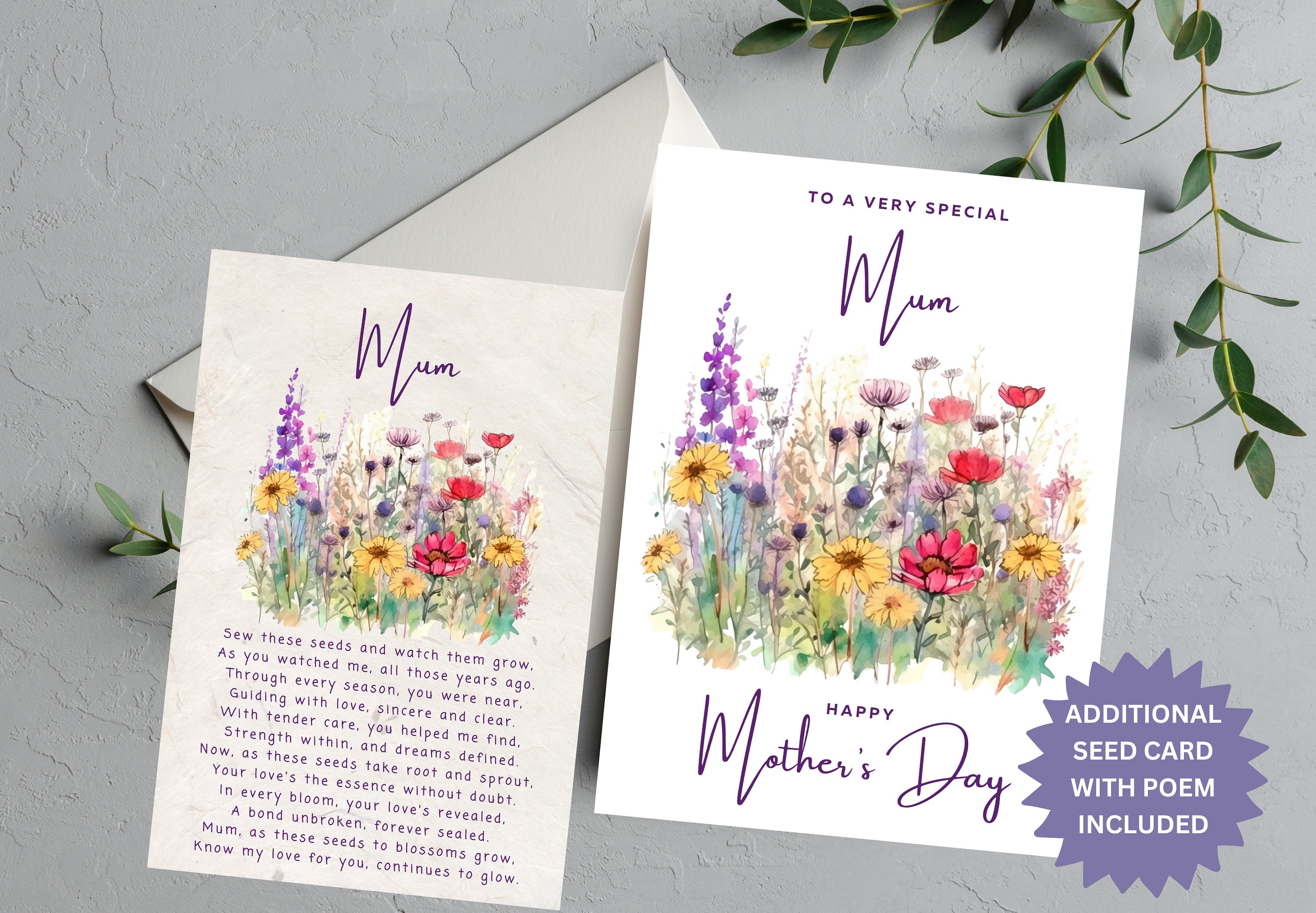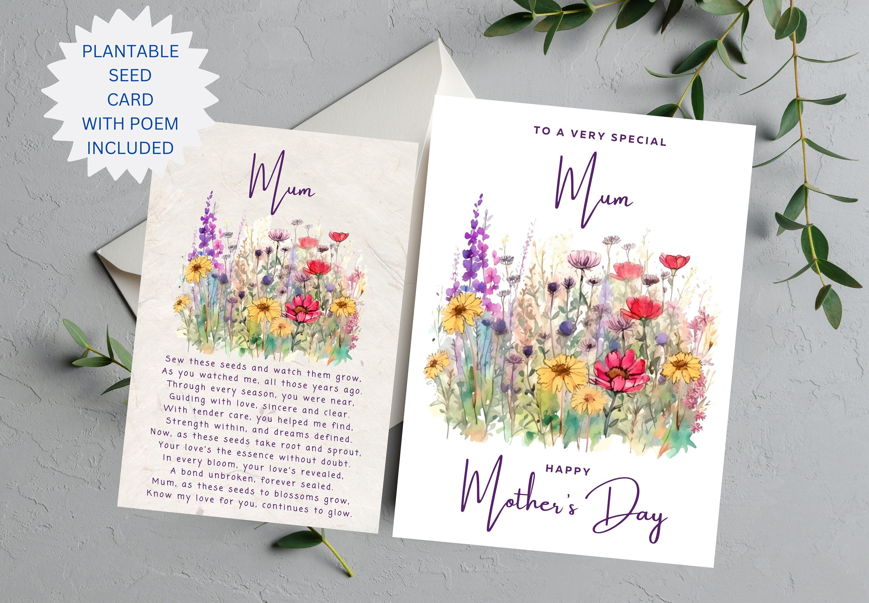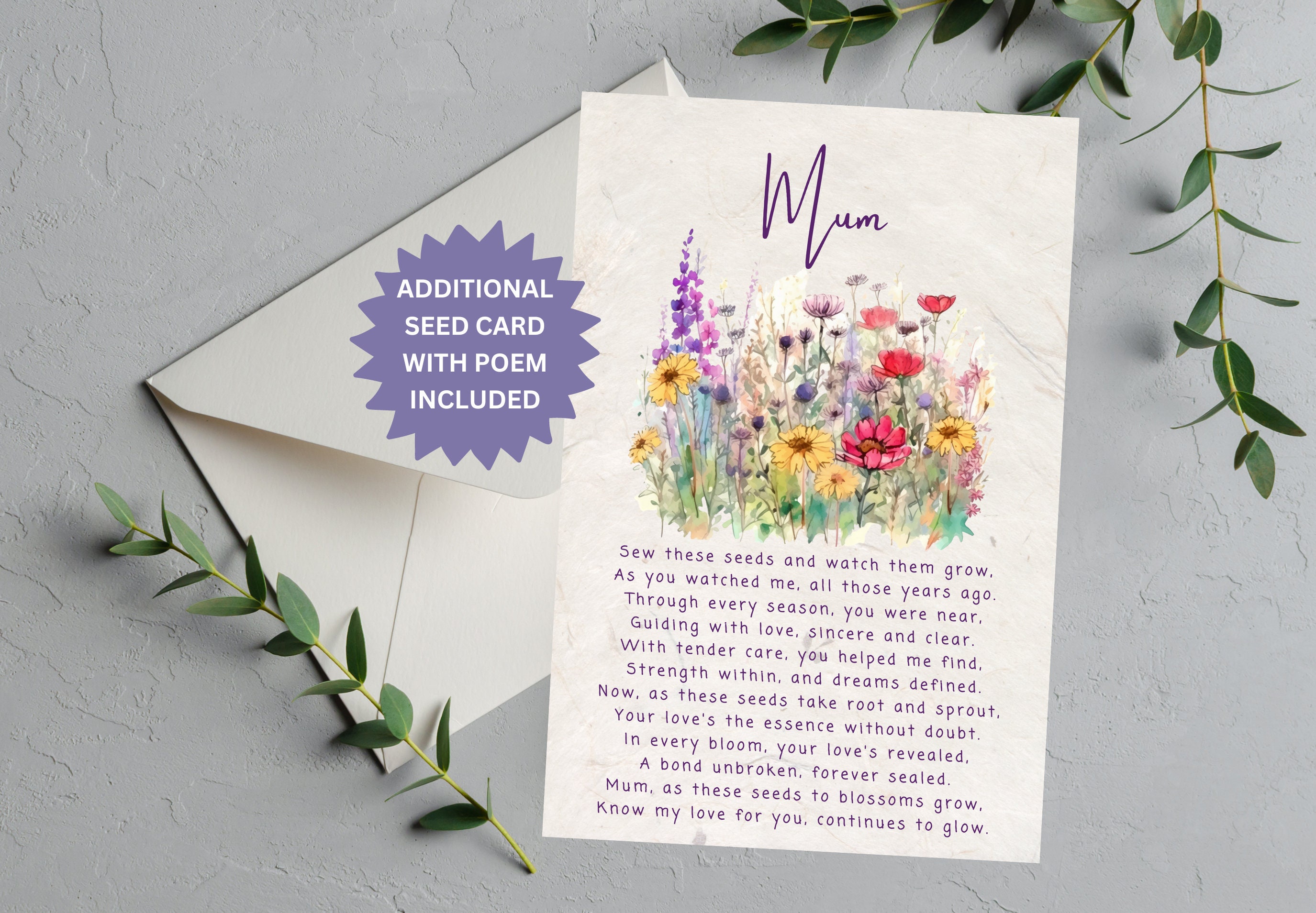 Schenken Sie ihr doch eine Karte zum Aufstellen und Wildblumensamen zum Pflanzen als Zeichen Ihrer Liebe.