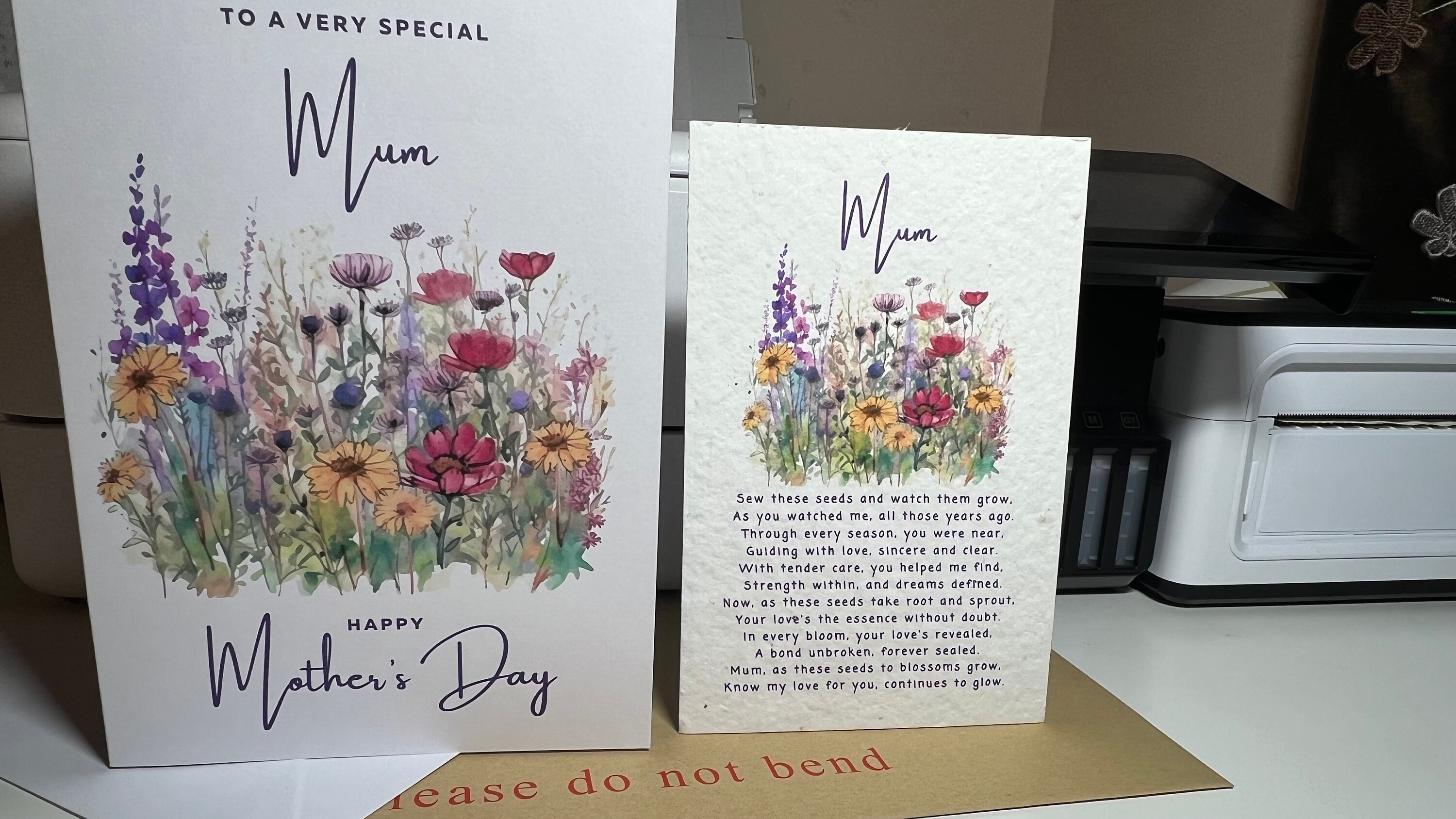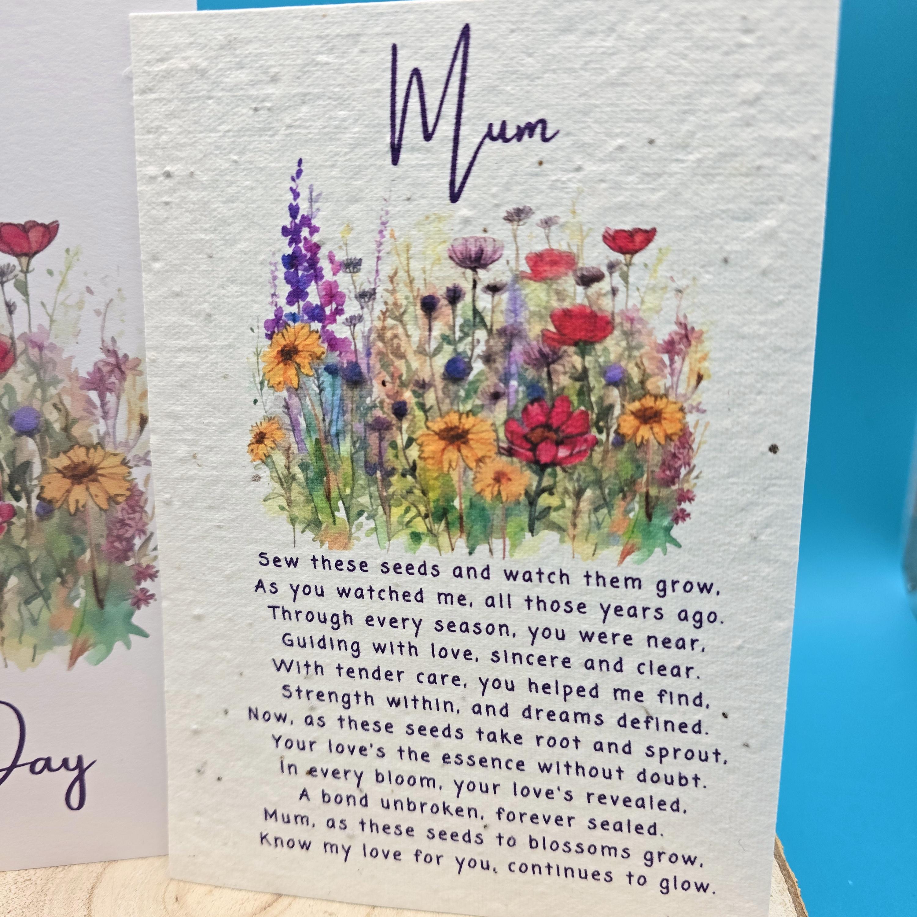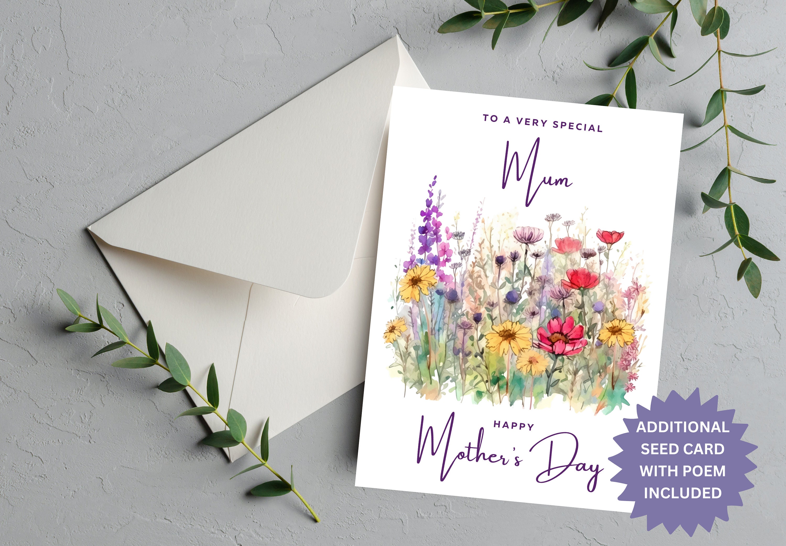 Schenken Sie ihr doch eine Karte zum Aufstellen und Wildblumensamen zum Pflanzen als Zeichen Ihrer Liebe.